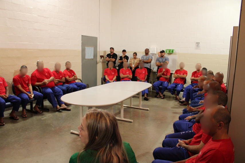 Entre as ações estruturantes do projeto, destaca-se a inserção dos internos em Grupos Reflexivos para Preparação ao Trabalho, uma estratégia essencial para fortalecer o compromisso dos reeducandos com a oportunidade recebida.